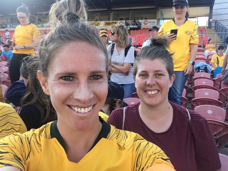 After the match. I’m not one usually to stick around and ask for signatures or photos. Usually I hide from the photos, and try to act too cool for it all. But this time I stuck around, thanks largely to my mate’s mission to get Emily Van Egmond’s photo (that I unintentionally photobombed, sorry Chloe!). I’m glad I did though. To see these players stick around for close to an hour after the game, signing anything that was thrown at them and taking selfies I imagine that left their cheek muscles sore afterwards from all the cheesing. That this side just lost a match many saw them as clear favourites to win, didn’t matter. It’s clear this game is for the fans, and the Matildas each remembered this, even as they were dragged off by their keepers saying “only one more signature, then we’ve really got to go”. Also I managed a to get a few signatures on my new Matildas scarf, plus a photo with my favourite player, Elise Kellond-Knight, which I’m still flipping out about (yup just call me a basic soccer girl now go on, I’ve got no regrets and it’s totally worth it).