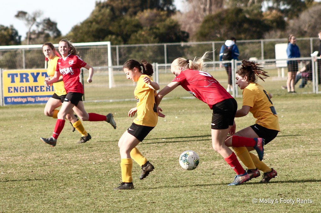 Starting with Ulverstone, a return of personnel saw the Reds revert to a much more comfortable four player defence. Lucy Reimer was the additional muscle at centre back with Emily Nellis. The duo would make for an excellent ‘partners in crime’ TV series of thwarting young forwards. This was a stark change to a back three who were simply outnumbered for large spells the previous weekend.