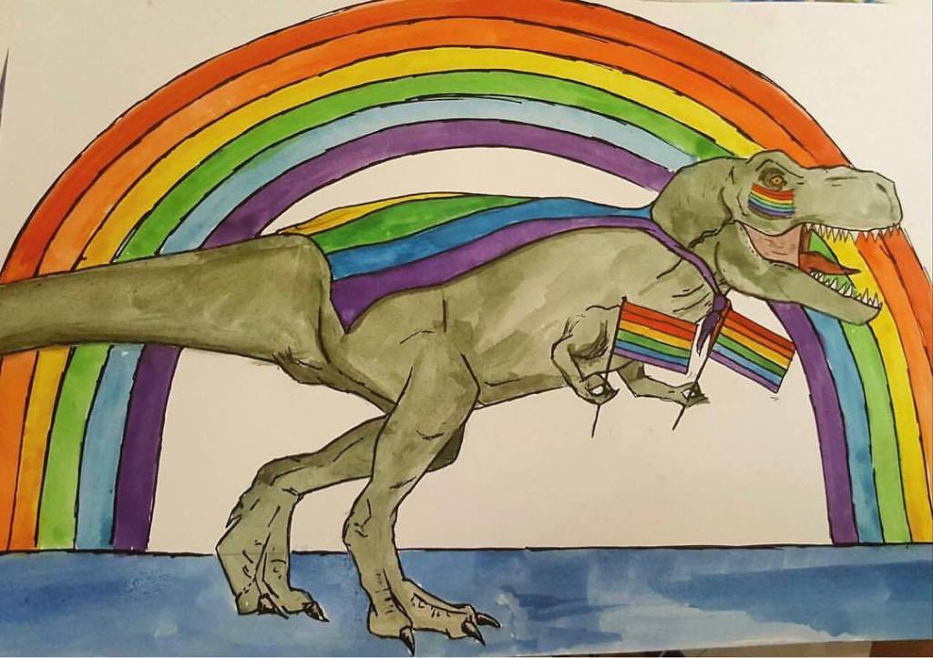 I mean, a dinosaur with rainbow flags is the perfect way to say you’re a lesbian right?