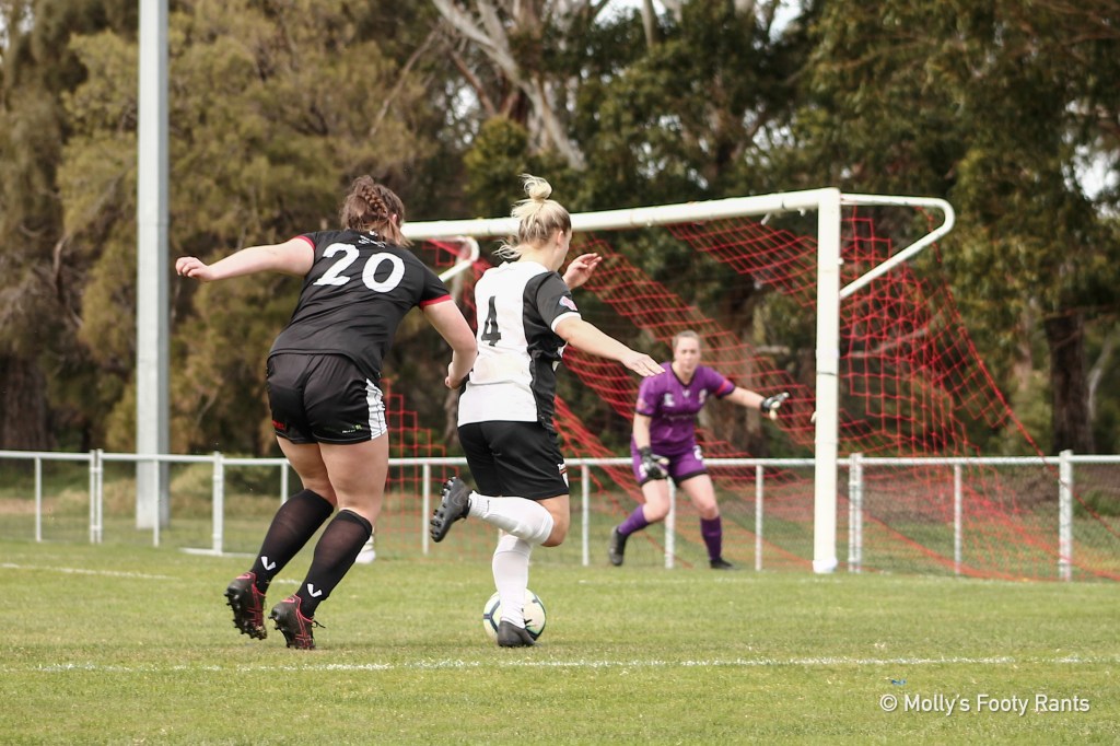 You’ve just gotta shoot to have a chance. Kingborough had enough balls in and around the box. By the end of the match they were shooting more freely. But there were moments where hesitation saw an already clustered South defence, shut down space with even more vigour. The combinations through midfield were full of movement, however overthinking shot the Lions in the foot.
